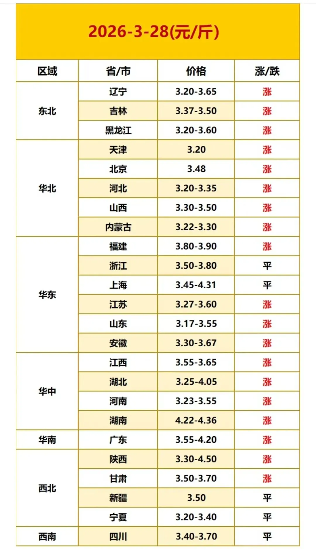 2026年3月28日全国鸡蛋价格最新走势 ? ? ? 全国鸡蛋最新价格参考: