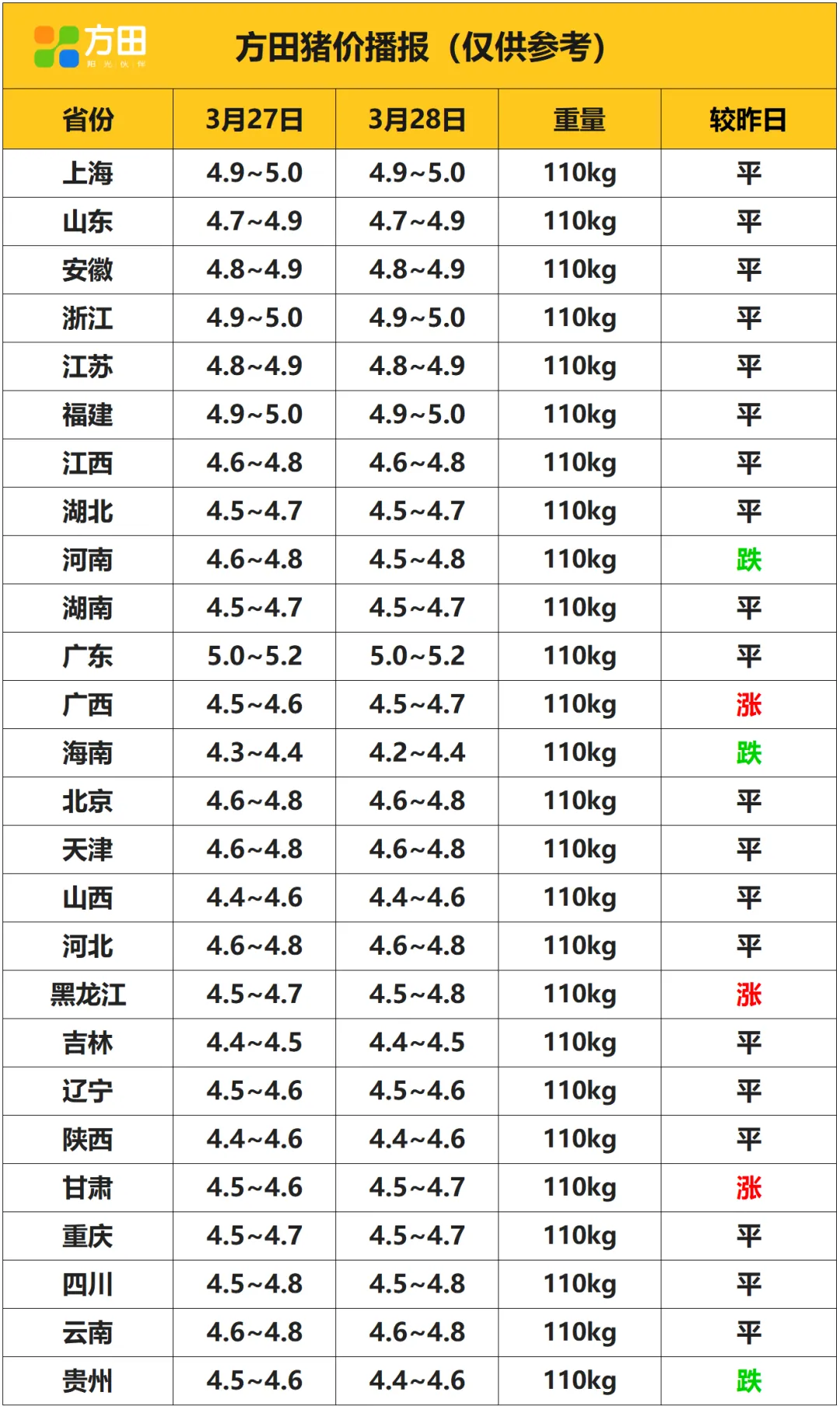 猪价丨3月28日 明日猪价早知道 养羊网 2026-03-27 猪价丨3月28日 明日猪价早知道 养羊网 2026-03-27 上一篇:养羊的乐趣 下一篇:【超前猪价大预测】3月29日~3月31日!全国猪价! 您可能还会对下面的文章感兴趣111: 相关文章 土鸡蛋的价格和大小无解! 为什么我们鸡蛋突然降价?看完你就明白了! 2025年4月13日全国各地生猪价格信息 2025年4月13日全国各地生猪价格信息