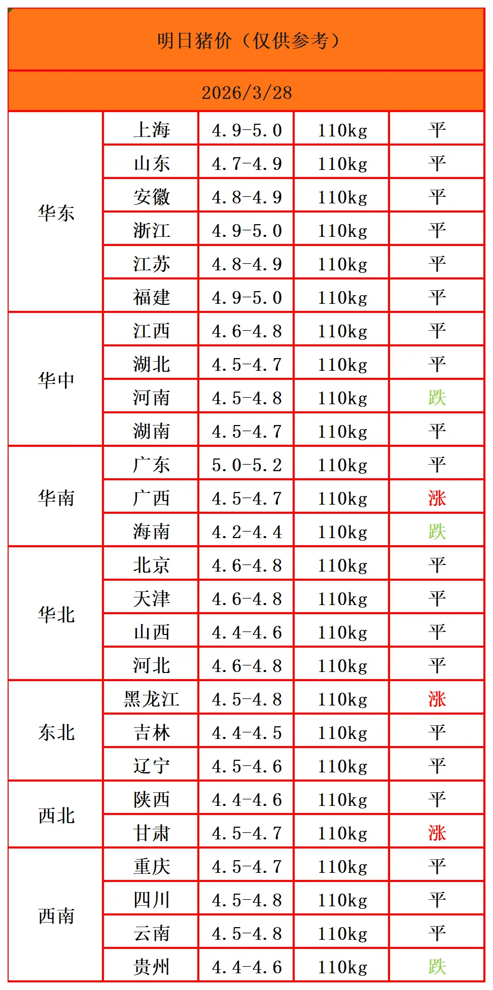 2、从市场角度来看,北京、上海消费城市批发市场白条价格呈现跌涨调整,市场成交情况表现一般,市场走货速度表现一般偏差。东北地区屠宰企业生猪采购难度表现一般,养殖户出栏积极性一般,集团猪场猪价呈现跌涨调整,屠宰企业停计划现象表现一般;中部、东部地区屠宰企业采购难度表现偏弱,当地养殖户出栏积极性表现一般,集团猪场销售速度表现一般,屠宰企业停计划现象表现偏好,停计划时间较昨日有所提前;南方地区屠宰企业采购难度表现一般偏弱,屠宰企业停计划现象表现一般,西南、华南集团猪场接货完成度表现一般,集团场猪价呈现窄幅调整态势。市场看稳、看跌情绪并存,预计后日猪价稳定为主,局部偏弱,重点关注养殖场户上市节奏变化。(来源网络)
