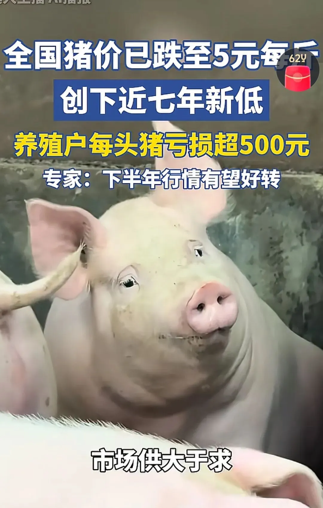 最近刷抖音,潮新闻的一条视频直接冲上热搜——全国生猪价格已跌破5元/斤大关。你没看错,不是排骨价,是活猪出栏价,创下近7年新低。