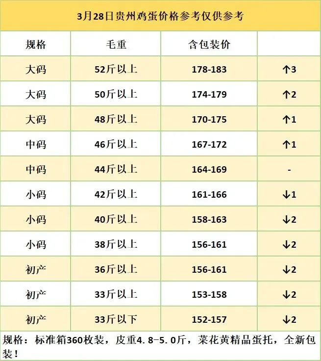 3月28日贵州鸡蛋价格参考
