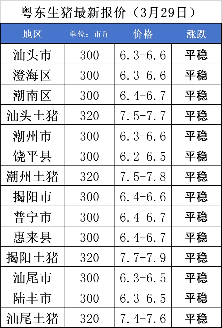 粤东生猪价格|3月29日最新猪价及未来三天预测