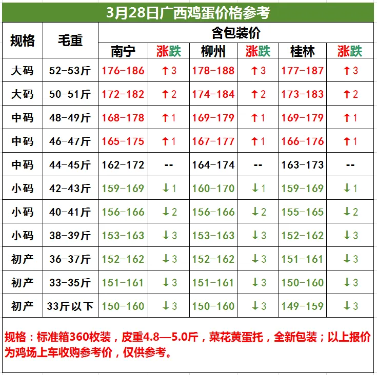 3月28日桂林、柳州、南宁鸡蛋价格参考
