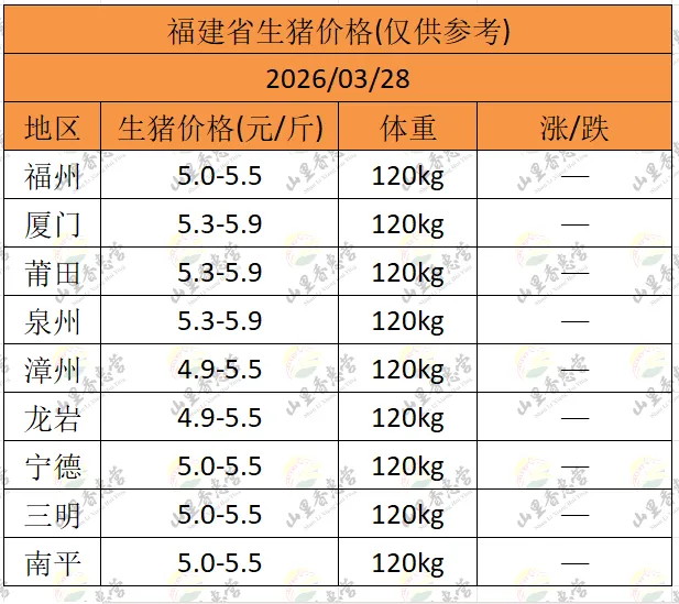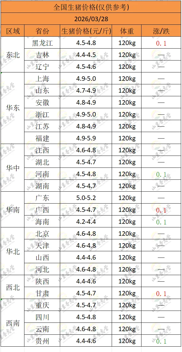 全国各地明日猪价(2026.03.28)-山里香惠营