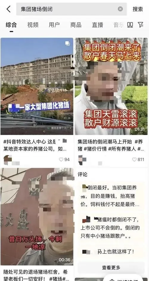 在微信视频号、抖音等平台,“某地集团猪场倒闭”的视频突然密集刷屏。镜头里,崭新的产床、智能饲喂系统被甩卖清仓,评论区一片喧哗:“散户春天来了!”“巨头垮了!”情绪高涨背后,却藏着层层包装的误读