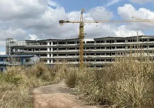 位于四川南充的一个六层楼房养猪场,至今仍如一座待建的城市雕塑般矗立。它建于2021年,外墙未贴瓦片,窗户只是空框,塔吊静止不动,四周野草疯长,几乎荒无人烟。