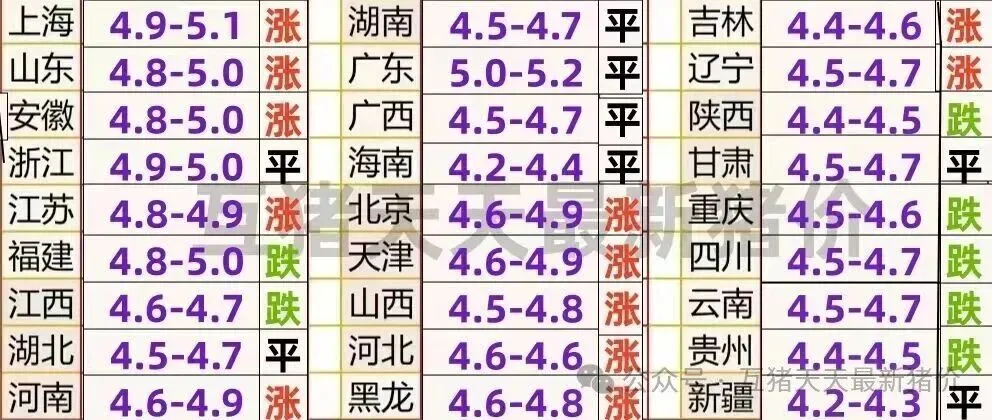 最新全国猪价: