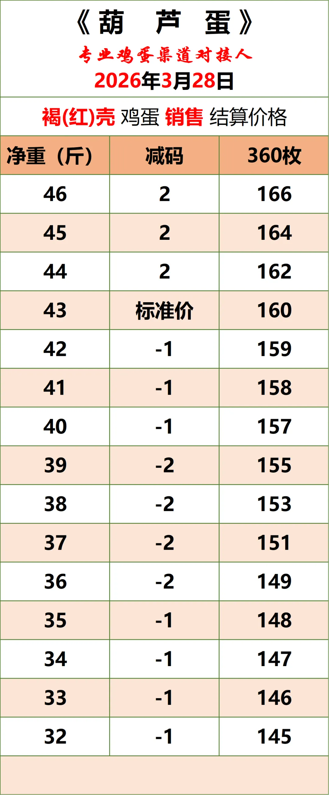 2026年3月28日《葫芦蛋》鸡蛋价格