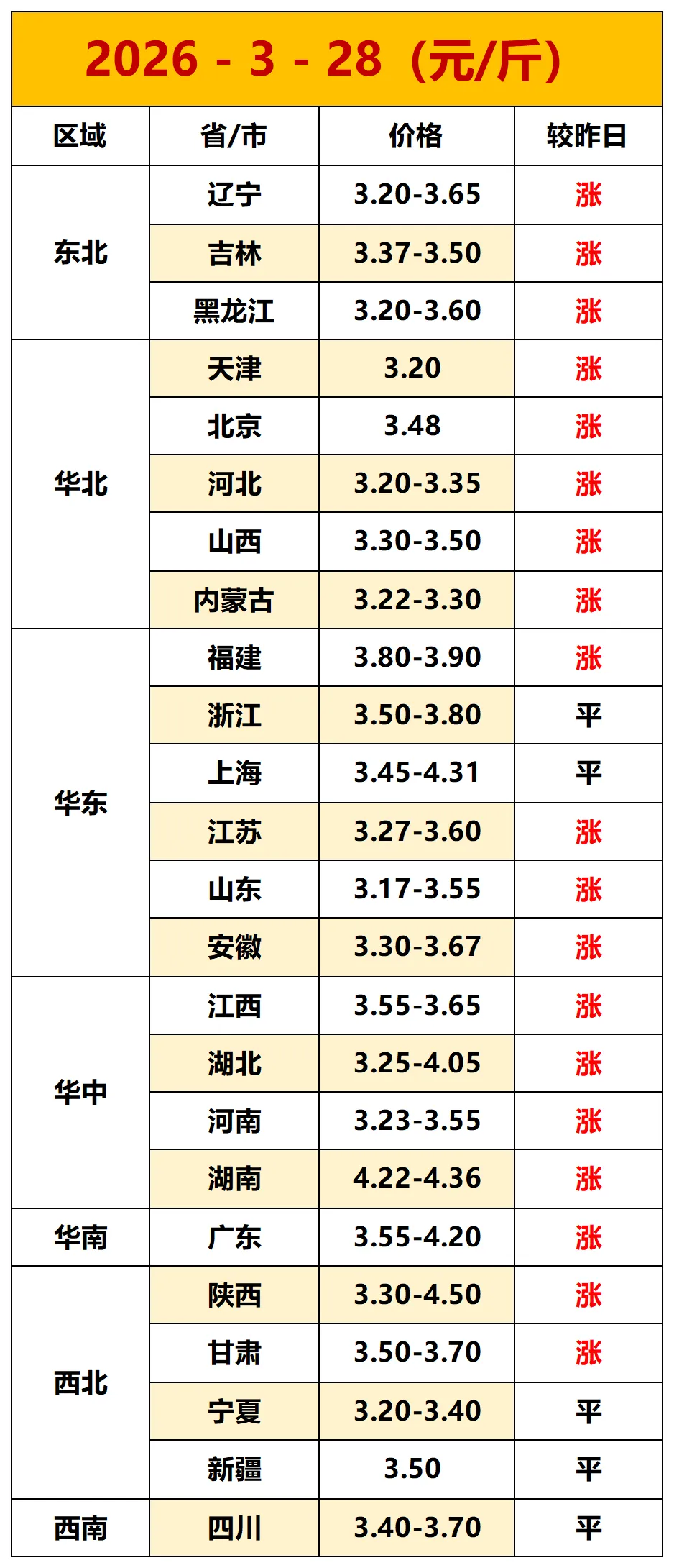 【鸡蛋价格】2026.3.28--明日蛋价(全面上涨!)