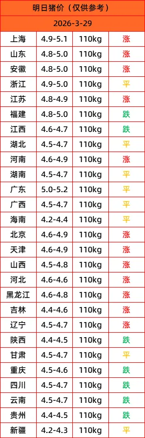 2026年3月29日 明日猪价,多地上涨 最新猪价行情!