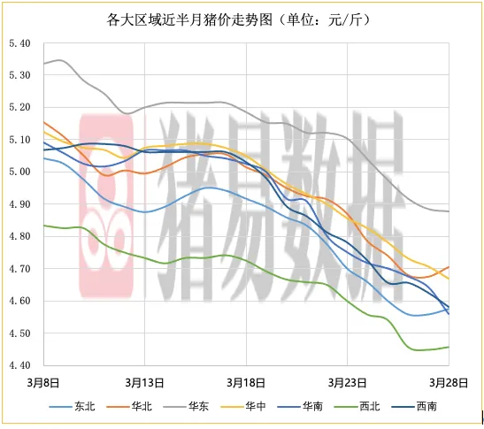 各大区域猪价表现: