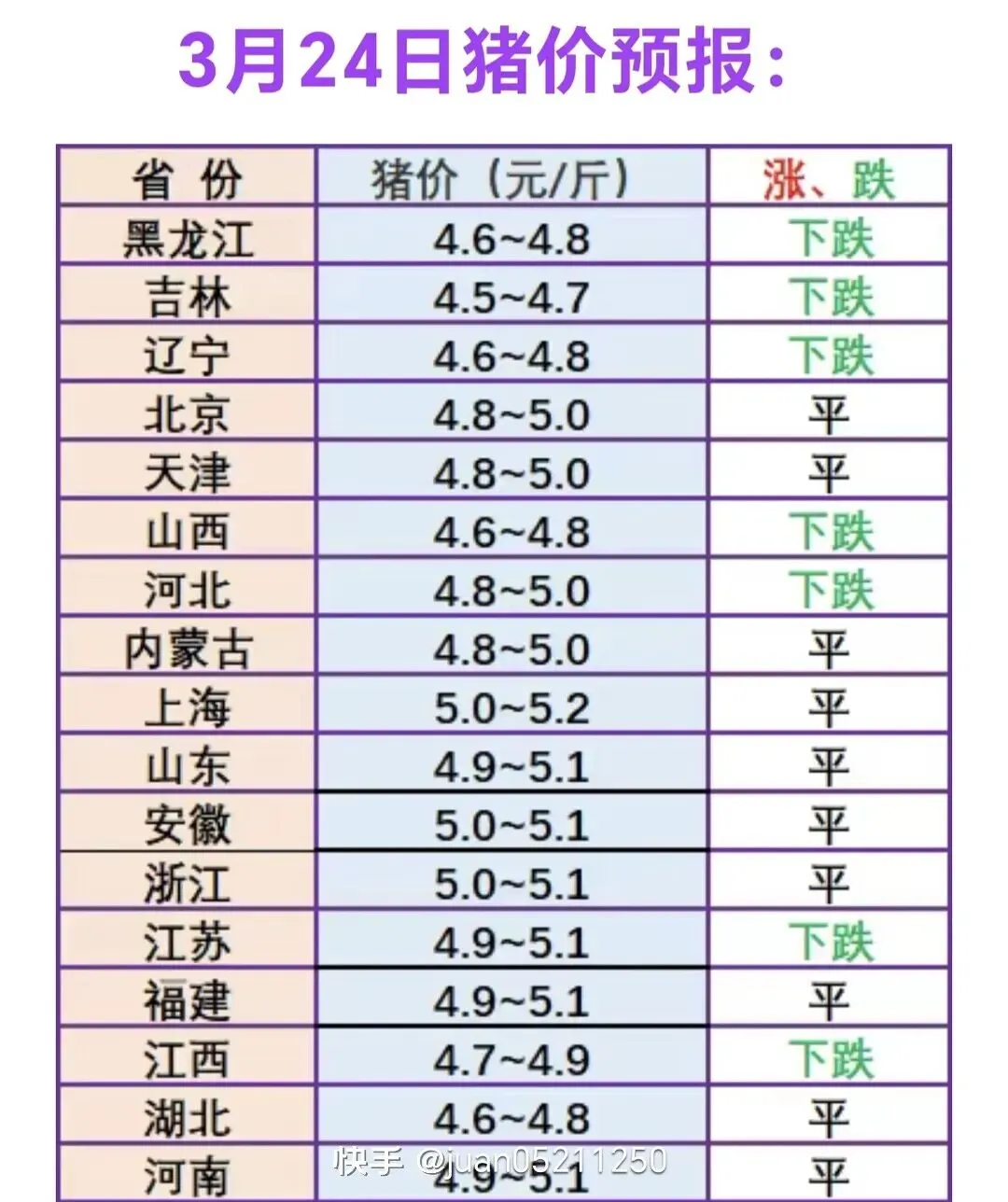 区域分化:东北、华北最低(4.4-4.8元/斤),华东、华南稍高(4.9-5.1元/斤),全国31省全线下跌。