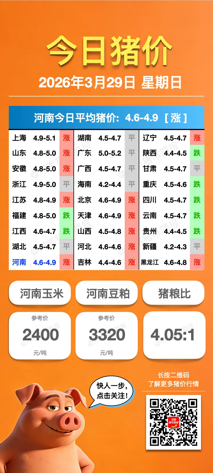 河南猪价涨啦!多地回升!2026.03.29-今日猪价