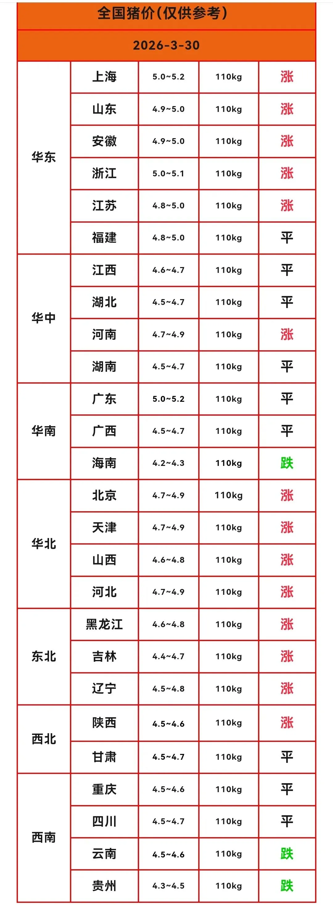 【明日猪价】3月30日猪价继续上涨,实现“三连涨”,猪价上涨通道开启了吗?近几天猪价“触底反弹”开启了一轮上涨走势,明天(3月30日)猪价继续反弹,有14个省份猪价上涨,猪价已经是连续三天反弹,给养猪人带来了些信心。 临近3月底,清明备货已经开始,猪肉消费端也有望迎来一波小高潮。但养猪人也不要抱有太大的期望,猪价近期虽然呈现稳中向好的走势,并不是生猪供需关系逆转,而是月底+清明的短期效应。 随着节日过去,4月份仍然处于传统的季节性猪肉消费淡季,在五一到来之前,猪价还有一段“需求低谷期”要走。 这段时间供应端出栏压力大,需求端改善并不明显,生猪供需过剩的局面还会延续。从近几天的猪价走势看,这轮猪周期底部或许已经出现,接下来就是长期的“筑底期”。 在猪周期底部,二次育肥大规模入场是快速反弹的最大带动,目前看二育的规模正在逐年缩小,政策层面这两年也一直在限制二育。那么养殖端“老老实实”地去产能就是猪价回升的关键。 现在规模化养殖猪企占比高,指望猪企主动去产能不现实,猪企为了市场份额,也只有在养猪陷入深度亏损、持续亏损、资金链坚持不下去的情况下,主动去产能速度才会加快。 现在这个情况已经到了淘母猪的时候,因为目前标猪亏、大猪亏、卖仔猪预计也即将进入亏损期。前段时间就有大型猪企融资,专门用来还债的情况。