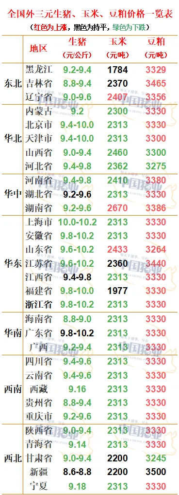 2026年3月26日国内生猪价格一览 图自中国猪业