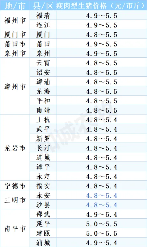 【猪价】2026.03.30福建各地区每日最新猪价