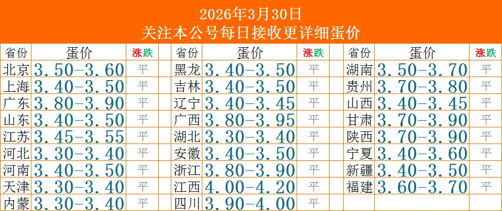 下图为3月30日全国鸡蛋价格表?仅供参考!