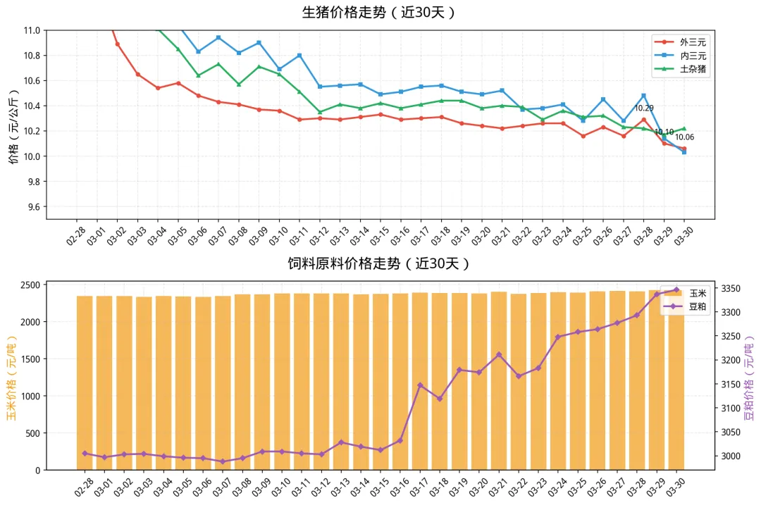 【猪价日报】2026年3月30日 全国均价10.06元 ↓ 玉米豆粕双双调整