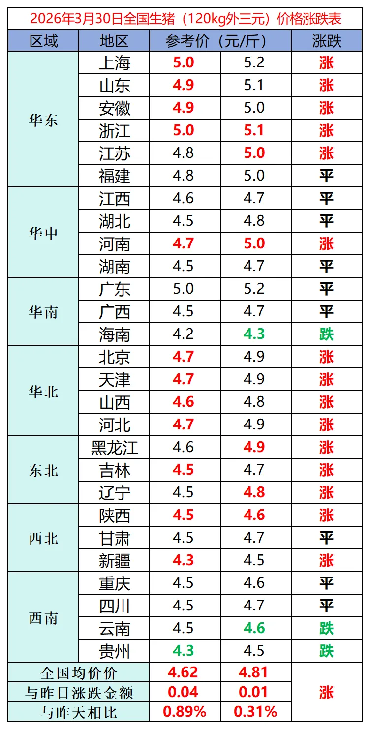 今日猪价 | 2026.3.30 今日猪价止跌回升,多地飘红,局部小幅回落
