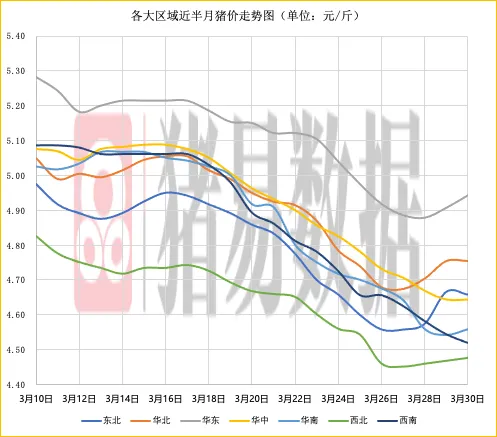 东北、西南地区猪价呈现下跌,西北、华东、华南地区猪价呈现上涨,华北、华中地区猪价呈现稳定,生猪平均价格微涨。
