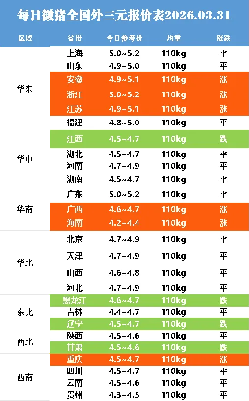 明日最新猪价2026.03.31点击蓝字关注 猪价不错过
