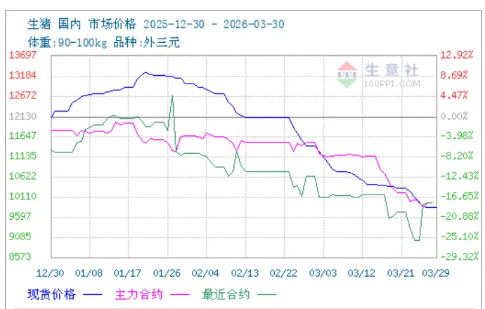 生猪期货主力合约低点 | 9815元/吨 | 跌幅超32% |
