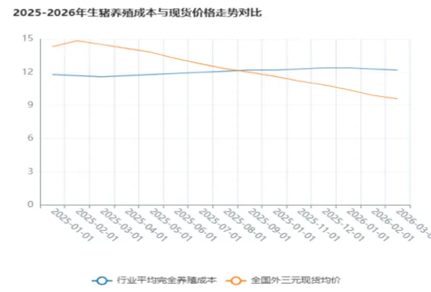 图表3:生猪养殖完全成本vs现货价格对比(2025.01-2026.03)