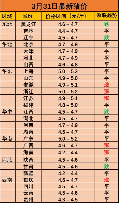下跌区域:主要为东北 (黑龙江、辽宁)、江西、甘肃等地。