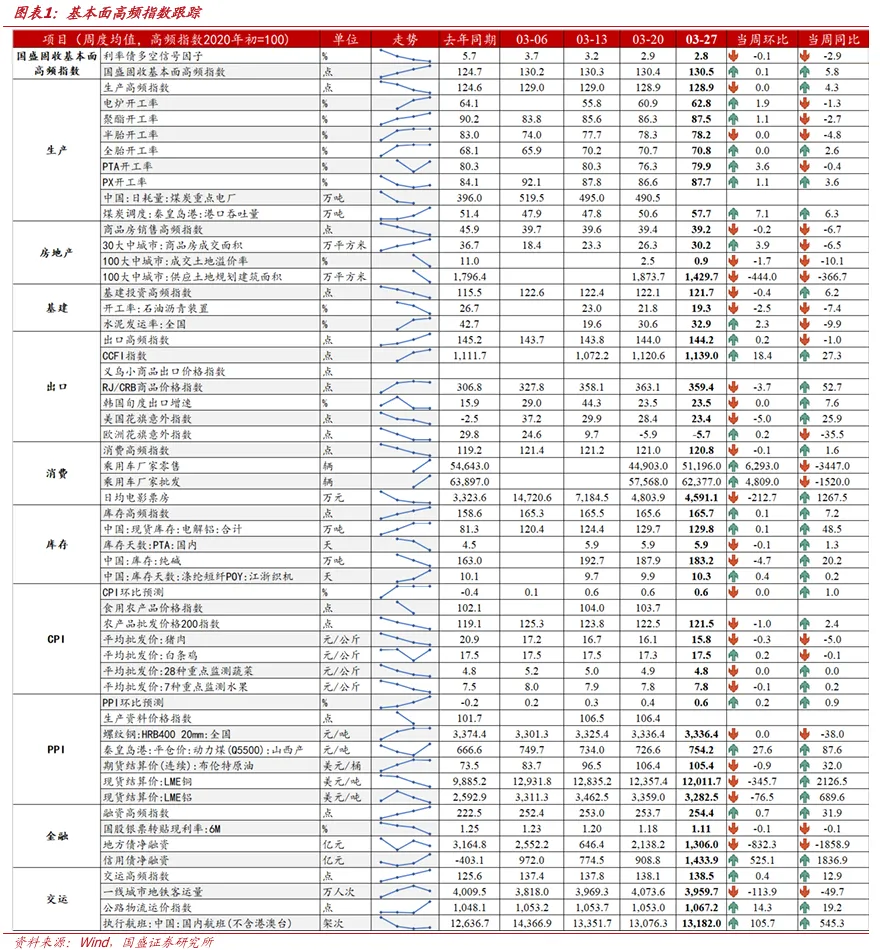 本次基本面高频数据更新时间为2026年3月22日-2026年3月28日: