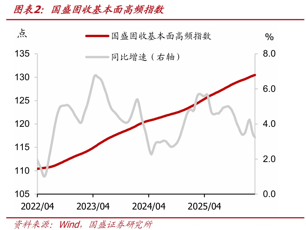 本期国盛基本面高频指数为130.5点(前值为130.4点),当周同比增加5.8点。利率债多空信号因子为2.8%(前值为2.9%)。