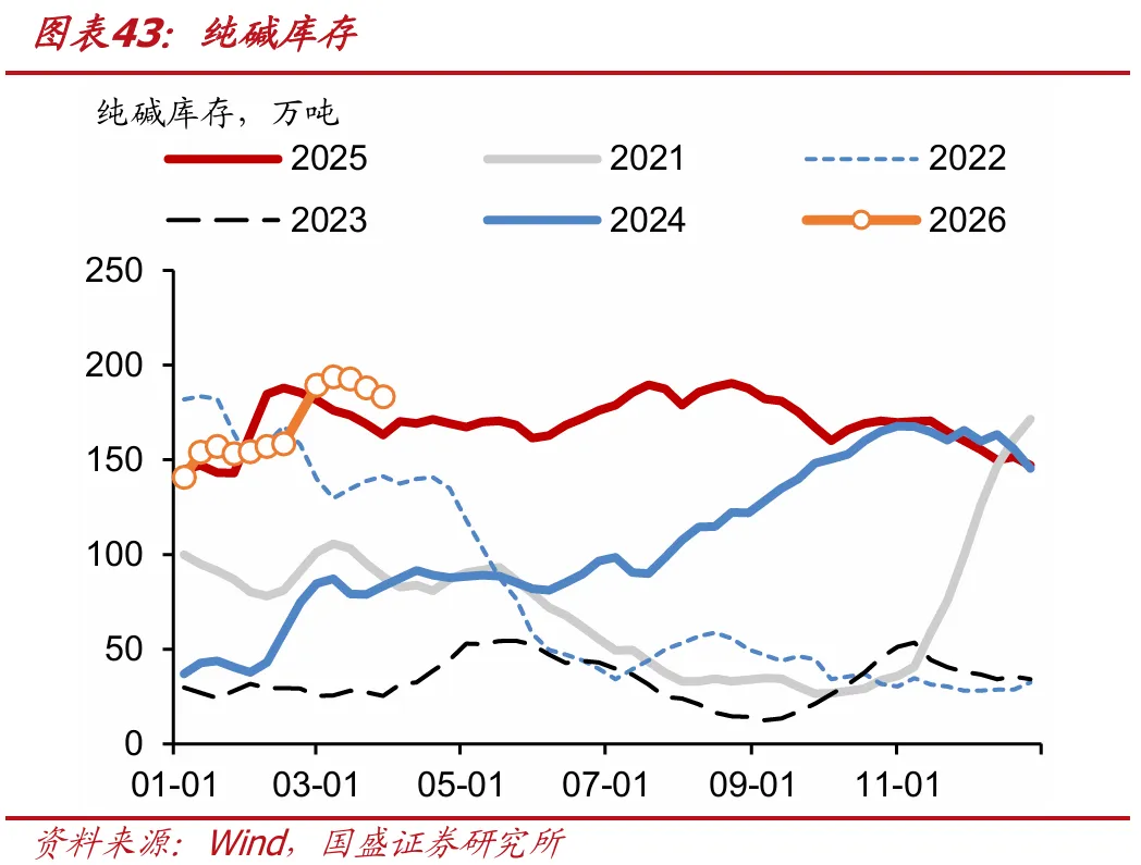 纯碱库存为183.2万吨,前值为187.9万吨。