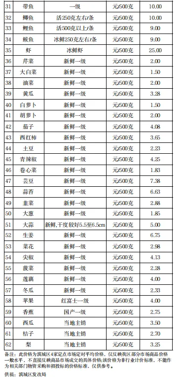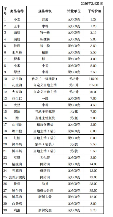 滨城区居民生活消费(食)品零售价格监测信息(3月)
