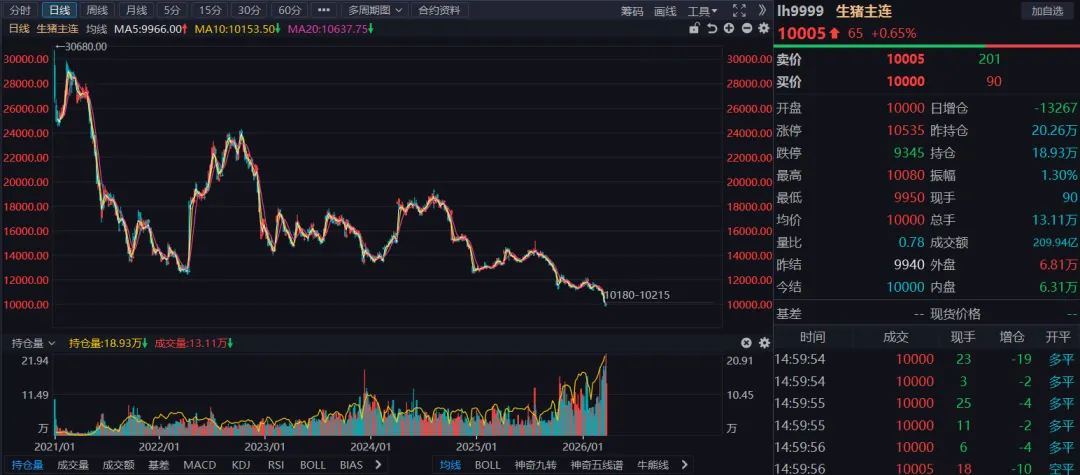 猪价为何跌破5元全国瘦肉型生猪交易均价跌至9.71元/公斤(即4.86元/斤),部分地区甚至低至4.2-4.5元/斤 养殖成本普遍在7.5元/斤以上,意味着每出栏一头猪亏损500-750元 猪肉是有猪周期的,详情见养猪企业价格战打疯了,政策都管不了 生猪期货主连在历史上走过几次周期,这次猪价创下历史新低。