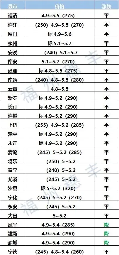 福建省生猪价格