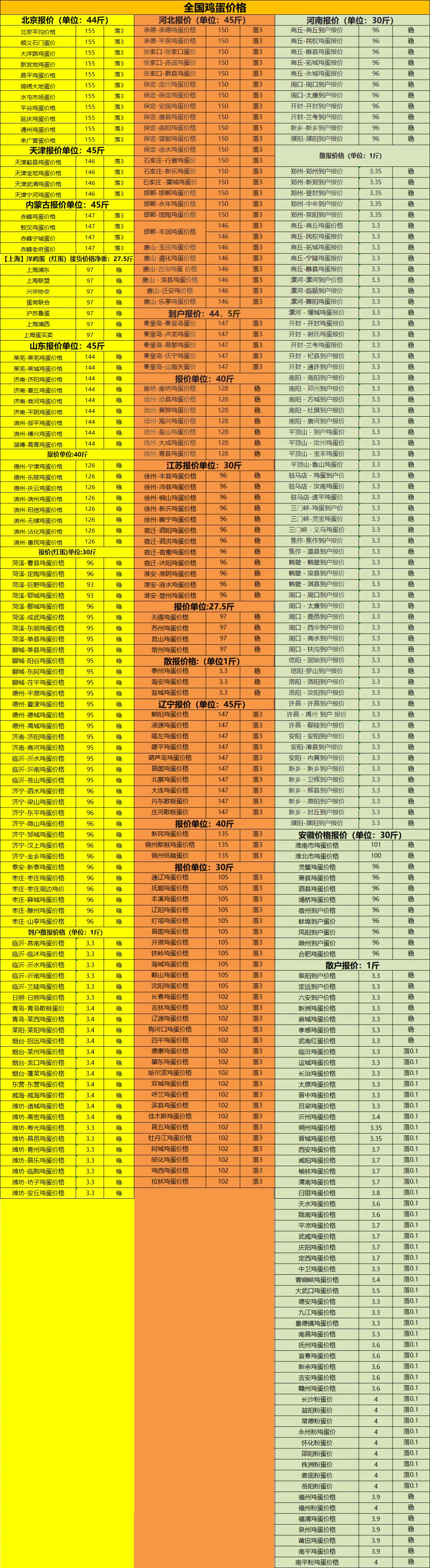 4.1全国鸡蛋价格 养羊网 2026-04-01 4.1全国鸡蛋价格 养羊网 2026-04-01 上一篇:4月1日猪价早报!全国低位震荡,养殖户该何去何从? 下一篇:2022.09.05-最新猪价信息(多地反弹,猪价又要涨了) 您可能还会对下面的文章感兴趣111: 相关文章 养羊多长时间才能看到效益?需要注意什么? 关于我的猫,差点去了宠物店几十万卖给你们 (2026年 1月10日)鸡蛋价格最新报价 今日猪价.2026.01.23最新生猪价格/期货猪价