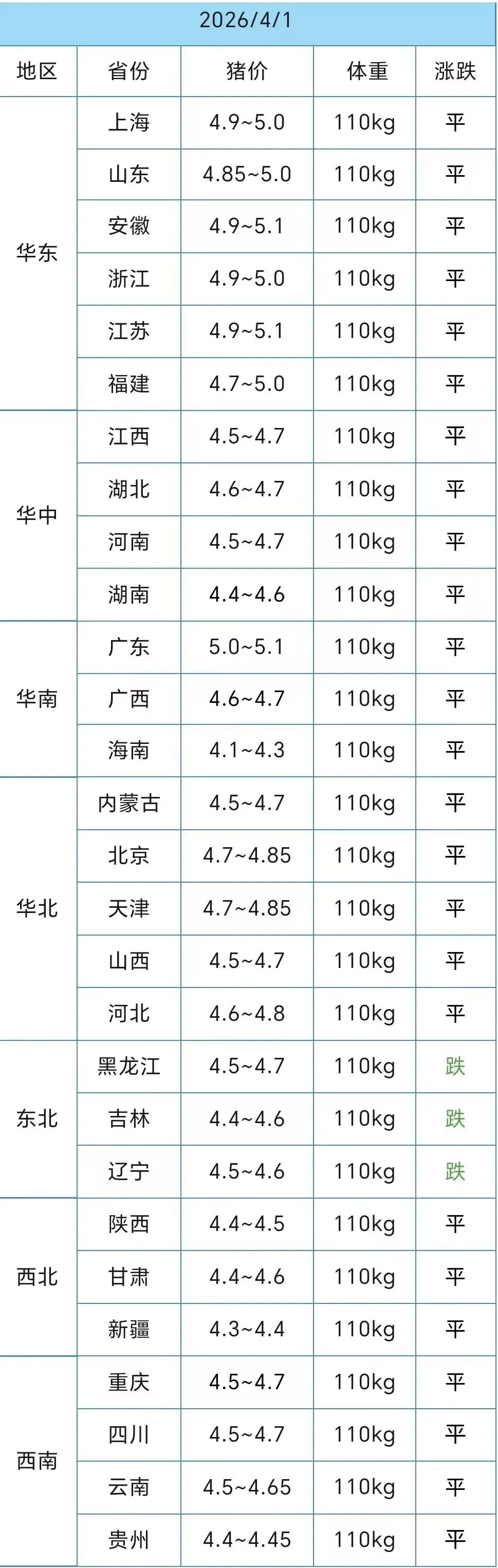 2026-04-01今日猪价 养羊网 2026-04-01 2026-04-01今日猪价 养羊网 2026-04-01 上一篇:明日猪价 | 2026.4.2日~全国各地最新猪价(猪价已更新!) 下一篇:猪价乍暖还寒:北方微涨难掩海南破4,4月行情两大预警待解 您可能还会对下面的文章感兴趣111: 相关文章 2026年1月7日全国猪价早知道 【明日猪价】2026.3.26全国猪价! 2026.1.15日猪价 北京新发地天津碧城石家庄蔬菜价格最新报价