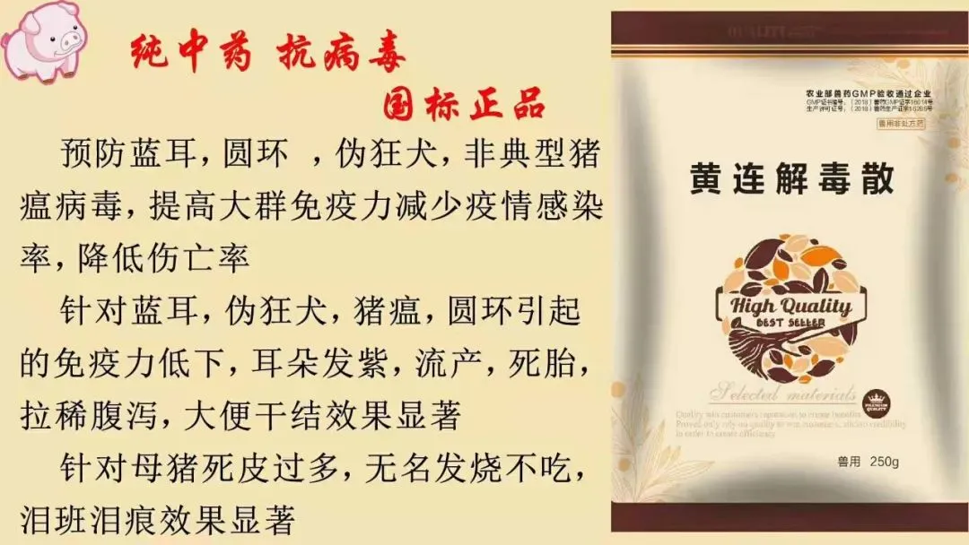 病毒感染引起的高热、蓝耳病、圆环病毒病、伪狂犬病、口蹄炎、猪流感、非典型性猪瘟等疾病引起的高烧高热反复、呼吸困难、咳嗽、流产、死胎、久配不孕、皮肤斑点、耳朵发蓝发紫、大便干结或拉稀等症