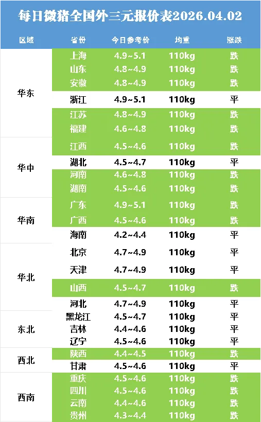 明日最新猪价2026.04.02点击蓝字关注 猪价不错过