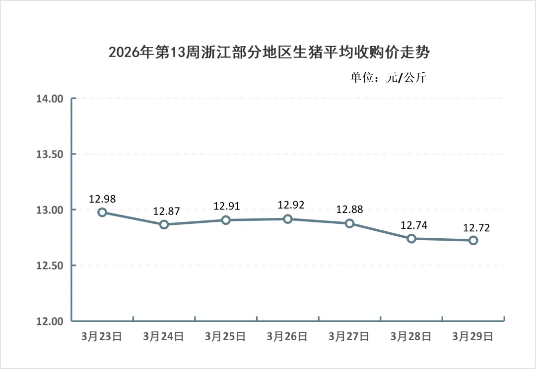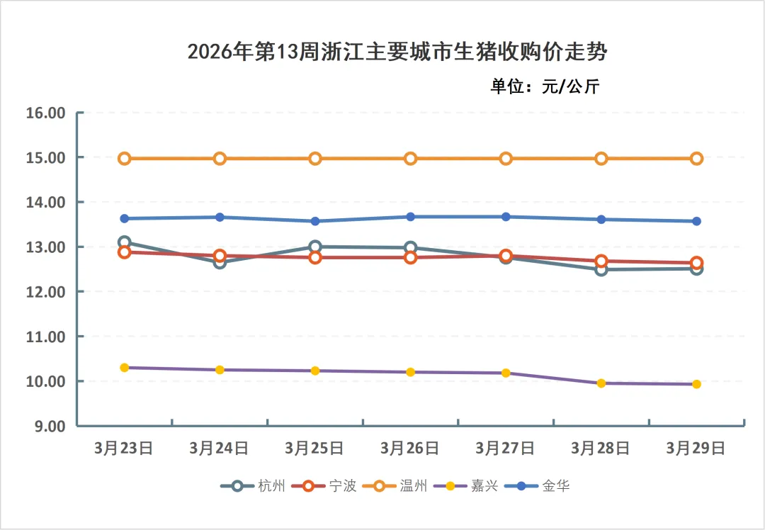 浙江2026年第13周生猪价格走势