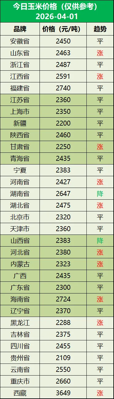 明日猪价(2026年04月02日) 养羊网 2026-04-01 明日猪价(2026年04月02日) 养羊网 2026-04-01 上一篇:【明日猪价】 2026.4.2稳中偏弱,屡破新低 下一篇:【黑龙江吉粮农牧】2026年4月2日猪价早知道 您可能还会对下面的文章感兴趣111: 相关文章 【Sparky】Porsche 964 壳牌&美孚涂装 近期价格更新!!! 近期价格更新!!! 动车站的泡面,鸡蛋,,贵到离谱
