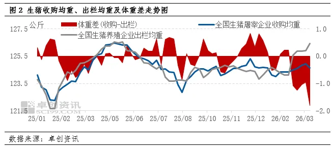 3月大猪持续保持较大出栏压力,终端屠宰虽有增量,但大猪消化压力仍大,且从收购均重与出栏均重测算体重差长期处于高位。4月随着宰量小幅度提升,市场消化或略加速,但大猪消化预期不足,养殖端或面临被动减重风险。
