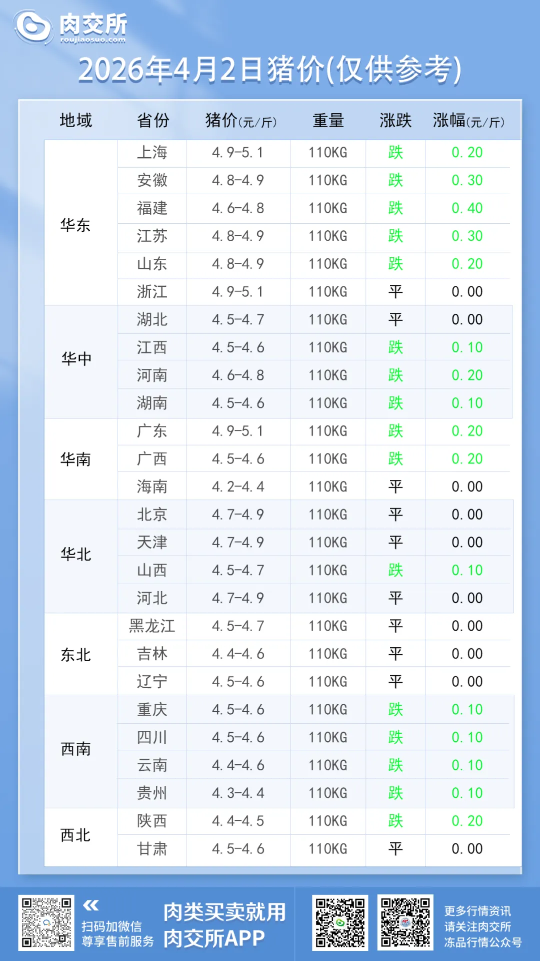 4 月 2 日的集体回落,是清明前后常规的调整期,不是 3 月行情的重演。收储的政策底仍在,出栏压力也已经明显缓解,猪价不会再创新低。熬过清明后的这波调整,五一备货启动后,行情会再次回暖。