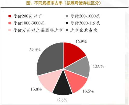 国内养殖格局集约化程度提升,定价权转移至集团场。上市企业与母猪万头以上大型养殖集团合计掌控行业43.1%的能繁母猪存栏,占据绝对主导地位;小中型规模养殖场(200-3000头)存栏占比27.4%,成为稳定产能、衔接市场的重要中间层;散户(200头以下)占比已萎缩至16.9%,逐步退出主流产能体系。