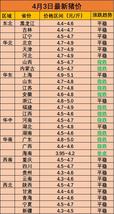 4月3日最新猪价!!大面积下跌!!!