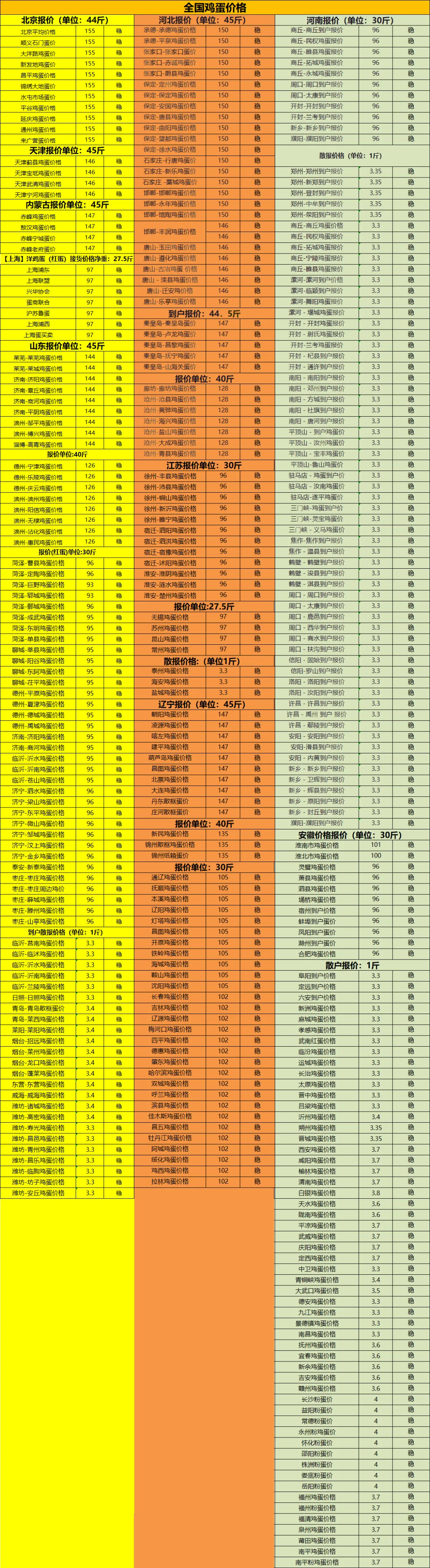 4.3全国鸡蛋价格 养羊网 2026-04-03 4.3全国鸡蛋价格 养羊网 2026-04-03 上一篇:2026年4月3 日山东鸡蛋价格实报 下一篇:2026年4月3日 湖北文燊蛋业鸡蛋价格 您可能还会对下面的文章感兴趣111: 相关文章 10月20日全国早间猪价上涨为主! 近期鸡蛋库存与走货情况汇总 蒂乐斯每日分享(生猪、毛鸡、鸡蛋价格趋势)-第260311期 第39篇:什么是【猪周期】?