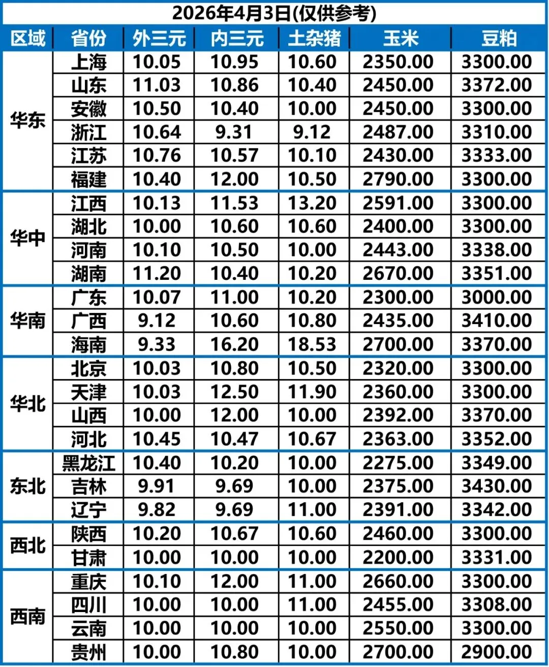 4月3日 | 正业生物猪价快报!