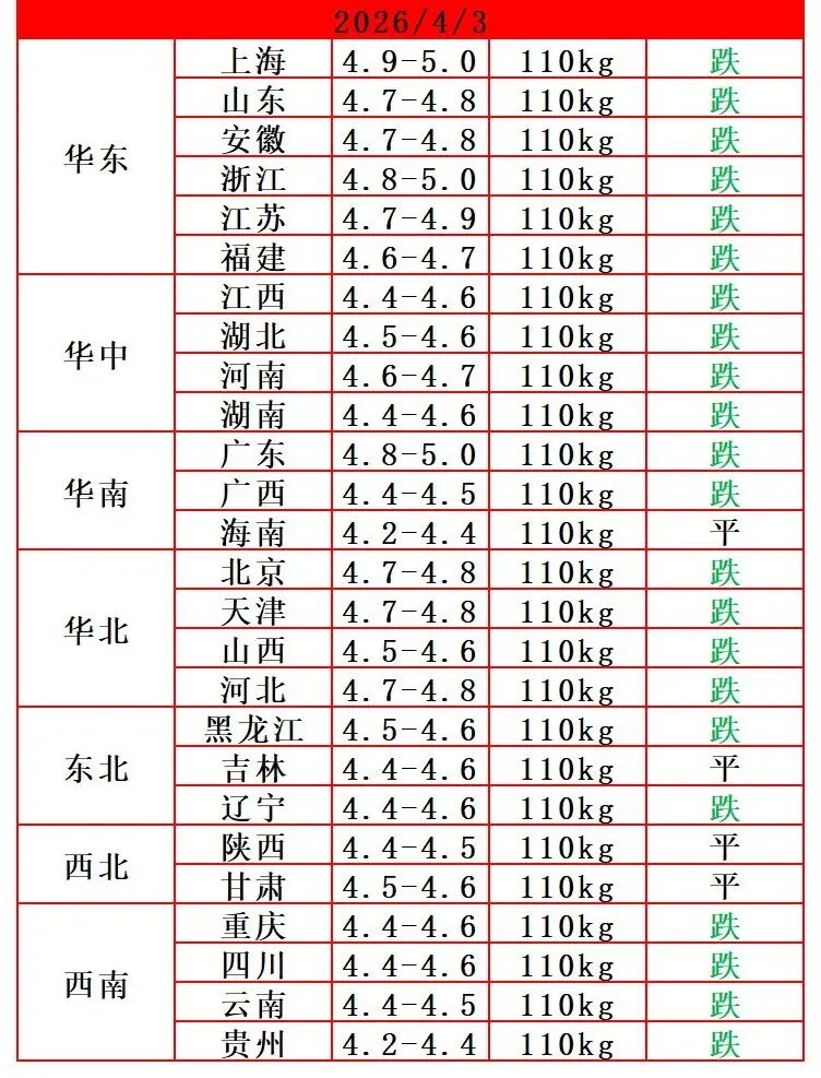 猪价有变,涨跌调整(2026-04-03)