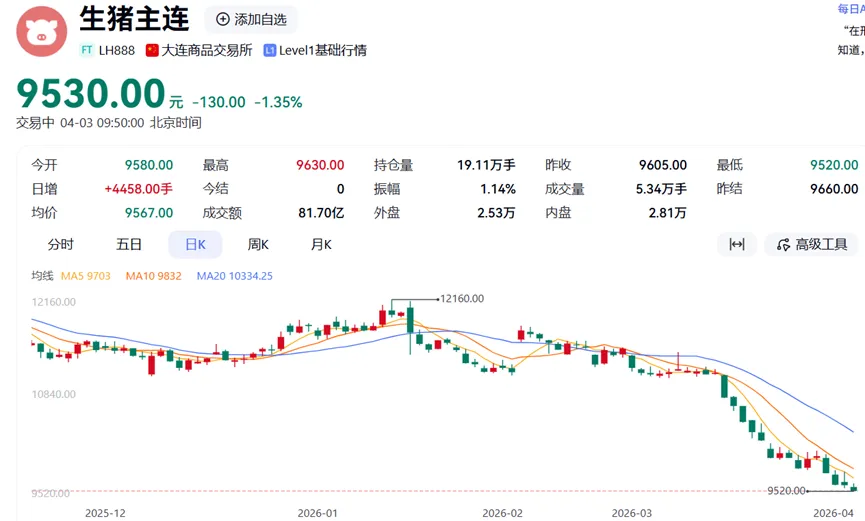 3月27日当周跌至9.51元/公斤,创近八年来新低。