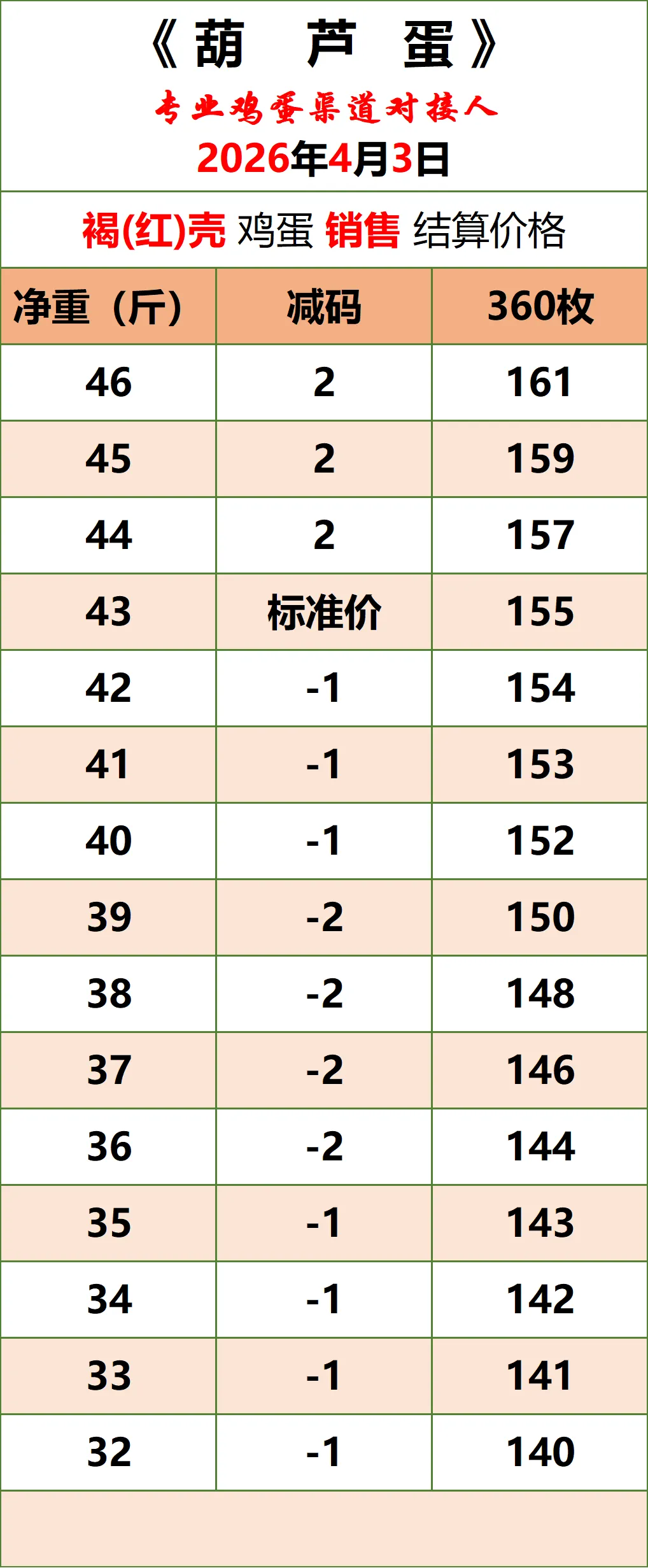 2026年4月3日《葫芦蛋》鸡蛋价格