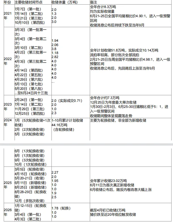 当前期货市场跌跌不休,现货市场成交冷清,整体行业情绪接近冰点。本文总结自生猪期货上市以来,收储时间节点及对应行情走势。